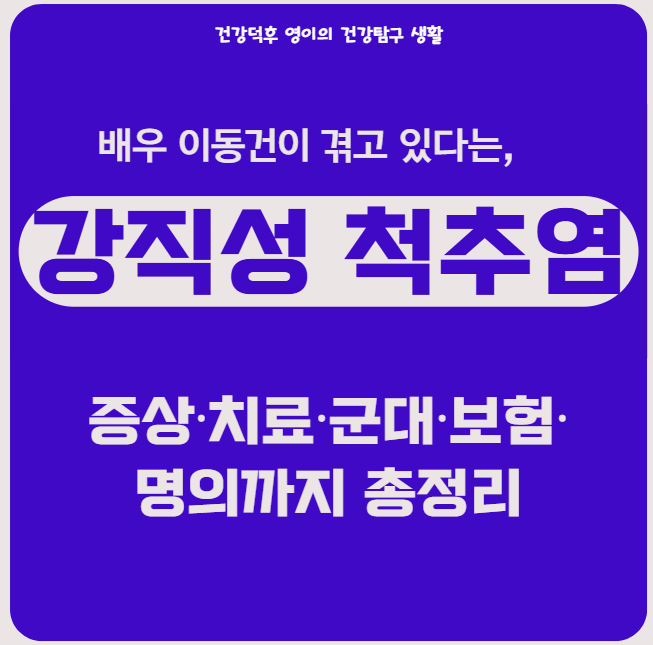 배우 이동건이 밝힌 강직성 척추염, 도대체 어떤 병일까? 증상·자가진단·원인·유전·치료·보험·군면제·임신·합병증·생활관리까지 총정리한 최종 가이드. 환자와 가족이 반드시 알아야 할 최신 정보와 생활 팁을 담았습니다.