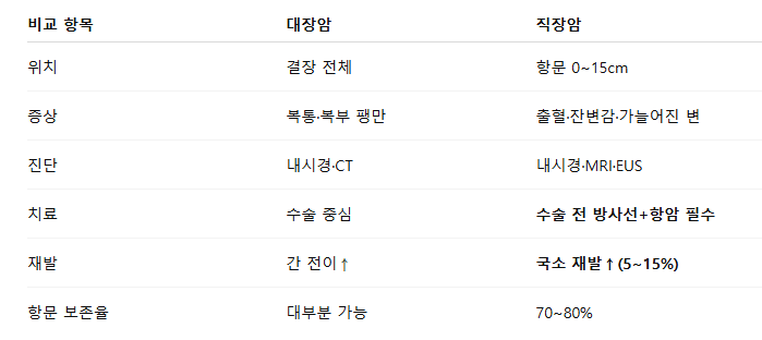 🔥 직장암 vs 대장암 차이 (가장 많이 헷갈리는 부분!)