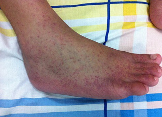 - 피부 발진 (팔다리, 몸통 등 여러 부위에 분홍색 또는 붉은 발진)