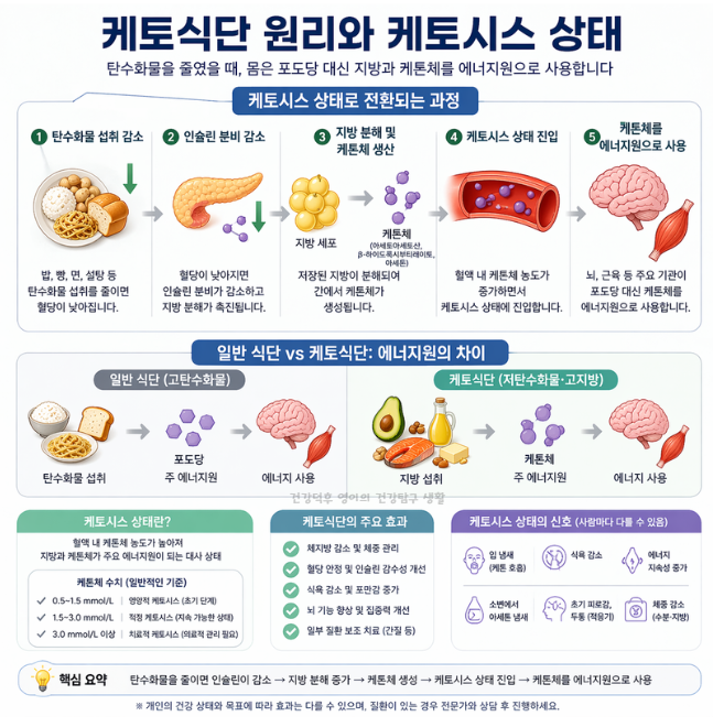 케토 식단이 궁금하다면 이 글 하나로 정리됩니다. 케토시스 원리, 탄수화물 기준, 부작용, 외식·운동·과일 섭취까지 실제로 많이 묻는 질문 중심으로 쉽게 확인하세요.