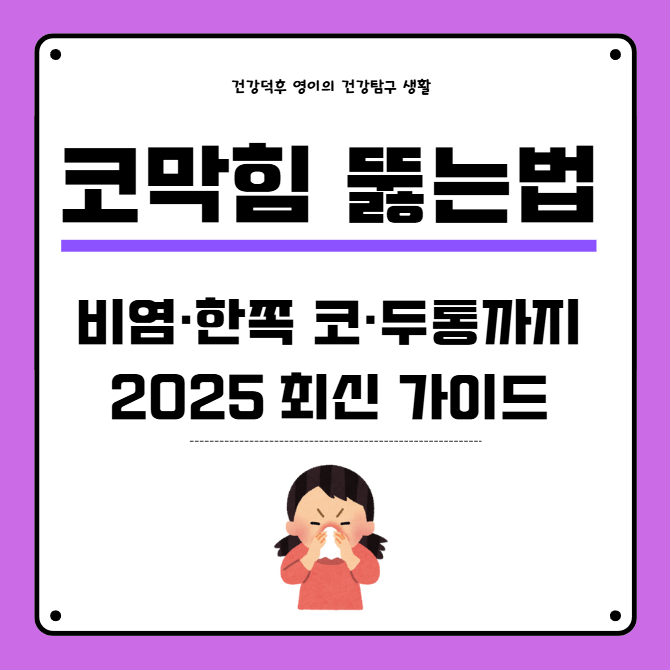 누구나 겪지만, 막상 오면 하루가 길어지는 게 코막힘이죠. 사실 코막힘은 감기·알레르기·부비동염(부비동=‘굴’, 흔히 ‘축농증’) 등 다양한 원인으로 생겨요. 정확히 알고, 안전하게 관리하면 훨씬 편해질 수 있어요. 기본부터 차근차근 같이 정리해볼게요.