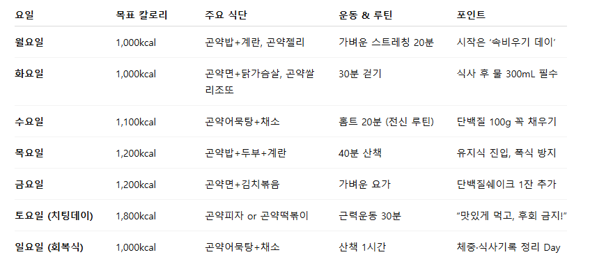 📆 1주일 곤약 다이어트 성공 패턴 (실전 루틴 버전)
