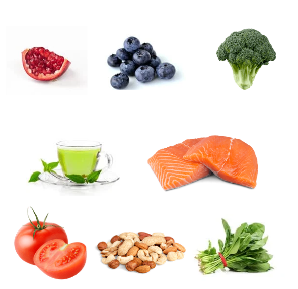 • 항산화 성분이 풍부한 음식: 블루베리, 석류, 녹차, 토마토(라이코펜)