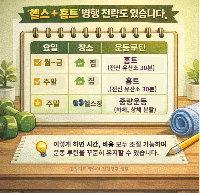 🔁 ‘헬스 + 홈트’ 병행 전략도 있습니다