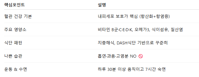 혈관은 단 하루의 식단보다 습관의 누적 효과에 반응해요.