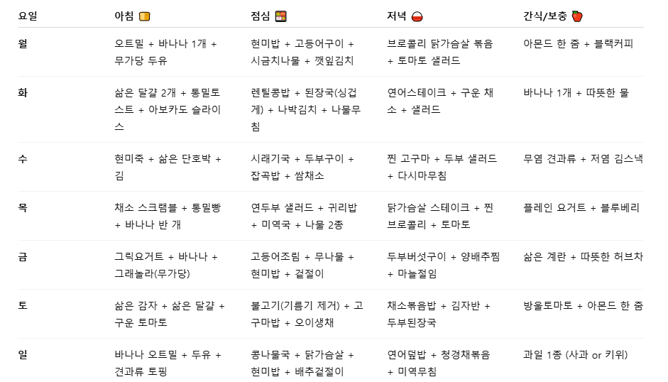 🗓️ 혈압 낮추는 1주일 식단 구성표