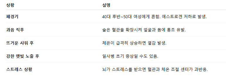 📅 3. 홍조와 열감이 자주 나타나는 상황
