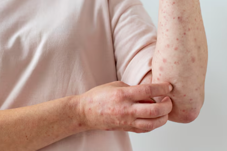 면역 이상으로 인한 만성 질환으로, 가려움과 함께 붉은 반점이 나타납니다.