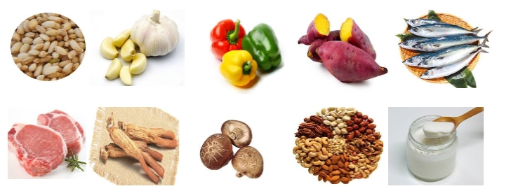 • 마늘: 알리신 성분이 살균·항균 효과 있고 면역 기능 촉진.