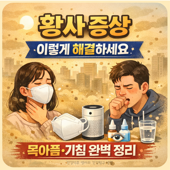 황사로 목 아픔, 기침, 눈 따가움이 생기는 이유부터 바로 효과 보는 대처법까지 정리했습니다. 마스크 선택 기준과 생활 관리 방법까지 한 번에 확인하세요.