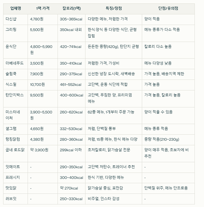 🚚 다이어트 도시락 배송업체 비교 (2025년 기준 인기 )