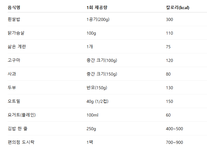 🍚 일상 음식의 1회분 칼로리 (이 정도는 꼭 알고 먹자!)