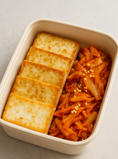 - 두부+김치 함께 도시락통에 담기