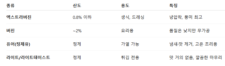 🧂 올리브유 종류 정리