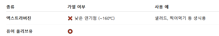 🔥 고온 조리엔 엑스트라버진 사용 금지!