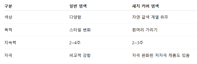 ✔ 새치 염색은 주기 조절과 두피 보호가 핵심