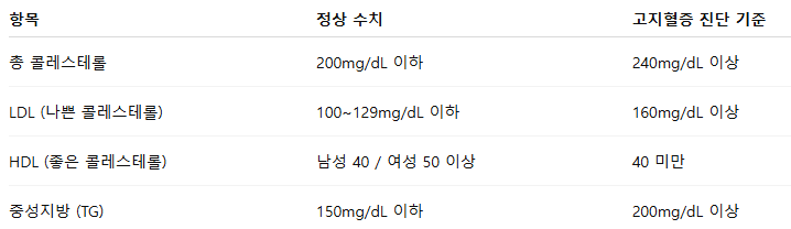 📊 고지혈증 기준 수치 (2025년 최신 기준)