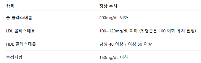 📊 콜레스테롤 정상 수치 (2025년 기준)