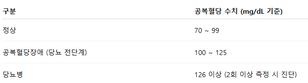 📉 정상 공복혈당 수치 (2025년 기준)