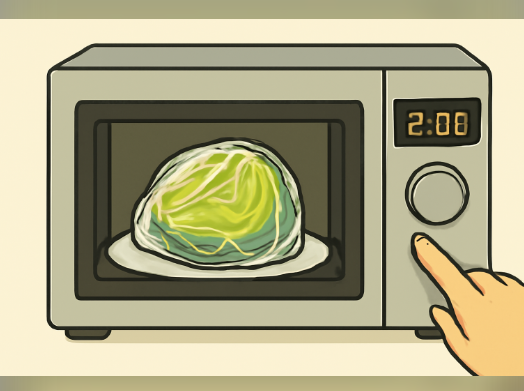 - 양배추를 전자레인지에 2분간 데운다 (또는 찜기 사용)