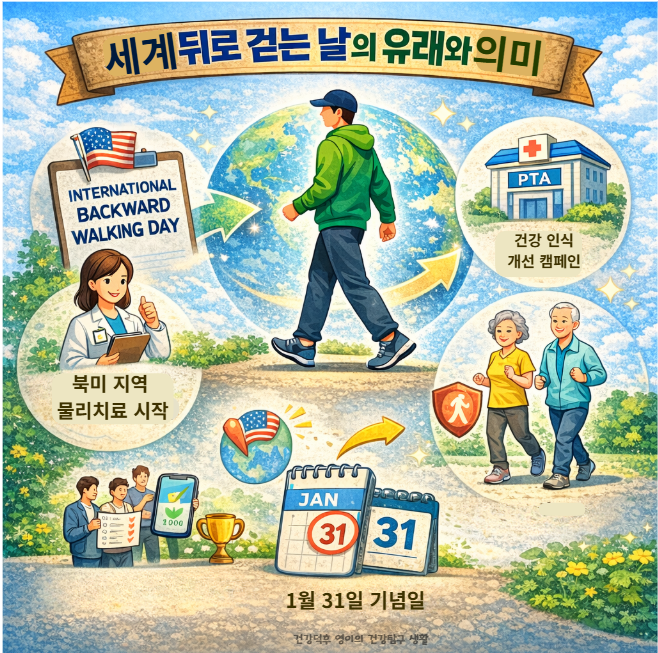 1월 31일 세계 뒤로 걷는 날은 단순한 기념일이 아닙니다. 무릎·허리 통증 완화와 두뇌 활성화까지, 뒤로 걷기의 건강 효과와 안전한 실천법을 2026년 최신 기준으로 알려드립니다.