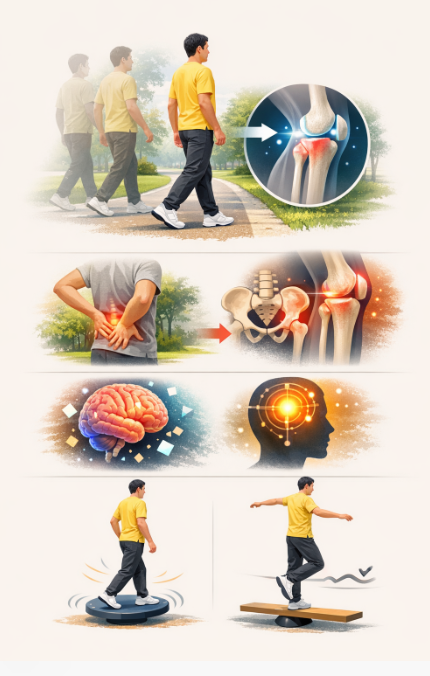 실제로 뒤로 걷기는 관절과 자세 교정뿐만 아니라, 뇌신경 자극으로 치매 예방에도 도움이 되는 것으로 입증되고 있습니다.