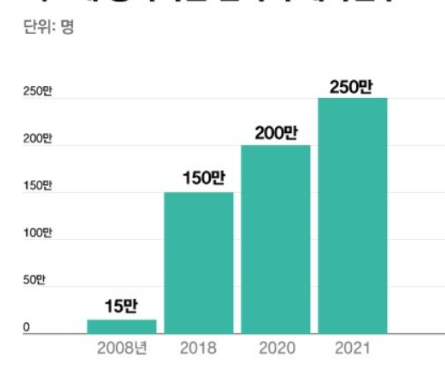 - 채식을 꾸준히 실천하는 사람은 약 200만~250만 명, 전체 인구의 약 5% 정도라고 해요.