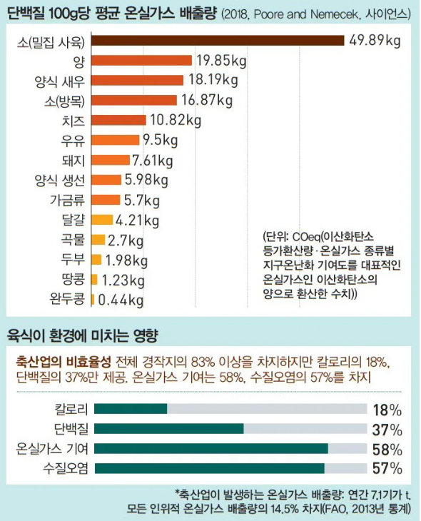 축산업이 배출하는 온실가스, 산림 파괴, 토지 및 물 사용량 등을 줄이려는 목표가 있어요. - 건강 증진