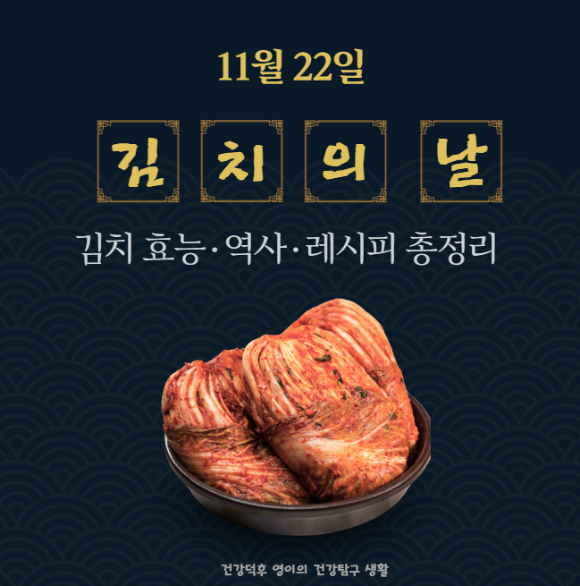 11월 22일 김치의 날 기념! 김치의 역사·종류·효능부터 세계적으로 사랑받는 이유, 김치 섭취 시 주의사항, 초간단 배추김치 레시피까지 건강 중심으로 총정리한 가이드.