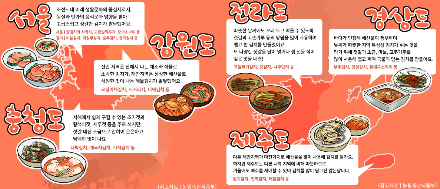- 조선 후기: 고춧가루 도입 → 빨간 배추김치 탄생