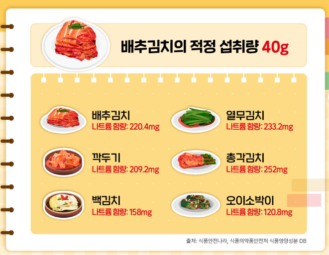✔️ 한국인의 1일 평균 김치 섭취량: 약 100g