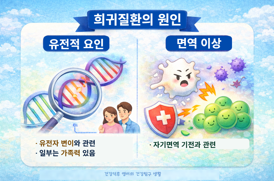 ※ 2026년 기준으로도 모든 희귀질환의 원인이 명확히 밝혀진 것은 아닙니다.