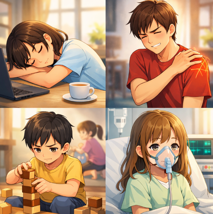 희귀질환의 종류는 수천 가지 이상으로 알려져 있으며, 개별 질환마다 원인과 경과가 매우 다를 수 있습니다. 개인 차이가 크기 때문에 동일 질환이라도 증상과 생활 영향은 다르게 나타날 수 있습니다.