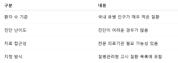 희귀질환 등록 목록과 지원 제도를 한 번 확인해 보시기 바랍니다.
