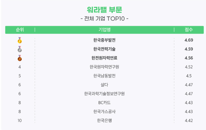 <워라벨 좋은 기업 best 10,출처:잡플래닛>