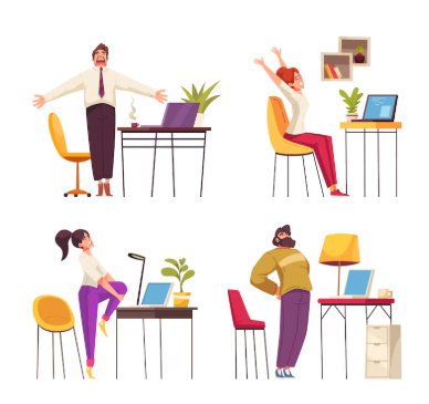 - 책상 팔 운동: 팔 뻗기, 책상 밀기 등