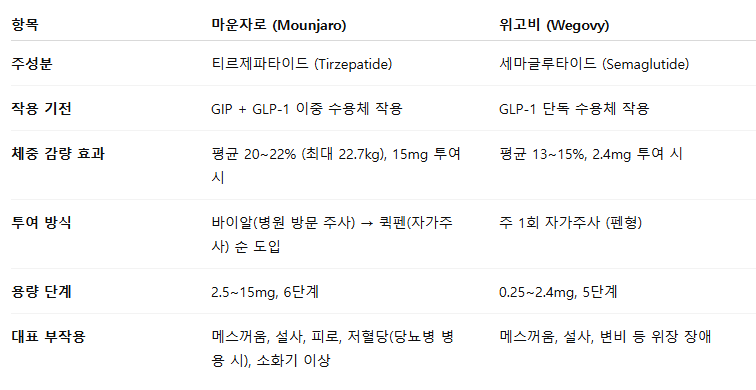 ✅ 2025년 비만 치료제 선택, 마운자로와 위고비 중 당신의 라이프스타일에 맞는 최적의 솔루션을 찾으세요!