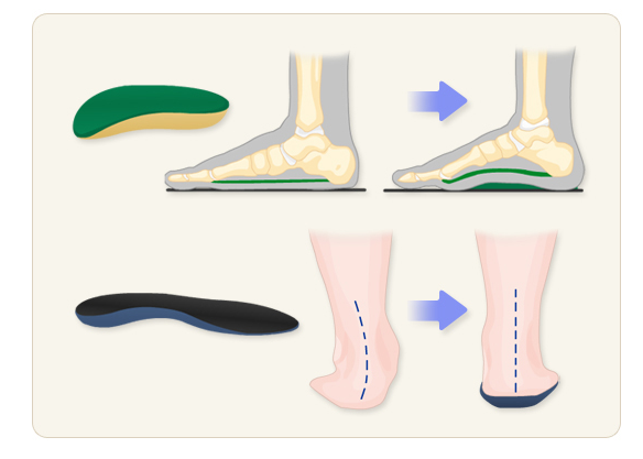- 깔창(보조기): 아치 지지용, 맞춤형 제작