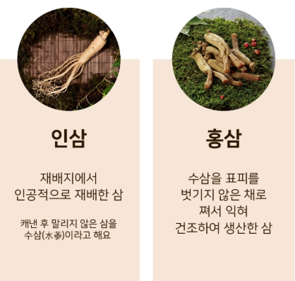 • 인삼의 경우 수삼 또는 백삼 형태로 요리에 적합하며, 홍삼은 주로 보조제로 섭취하는 것이 좋습니다.