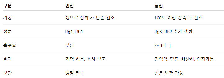 🔄 홍삼 vs 인삼 비교 분석