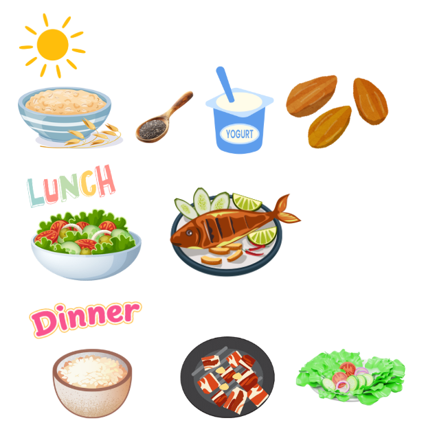 아래는 하루 식단에 위 식품들을 녹여내는 예시예요.